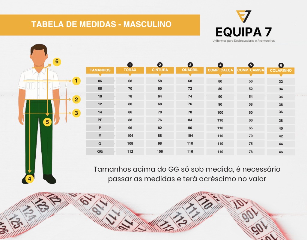 Confeccionado com qualidade premium, nosso uniforme apresenta costura reforçada e tecido oficial, garantindo durabilidade e conforto durante todas as atividades. Cada detalhe é pensado para seguir rigorosamente as medidas especificações oficiais do manual.